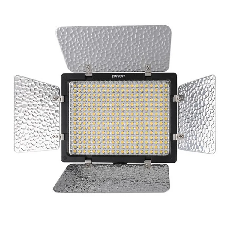A luz na câmera de cor variável LED 300-II é uma de uma série de luzes LED na câmera da Yongnuo Digital. Esta unidade compacta, ajustável em tungstênio/luz diurna de 3200–5500K, oferece dois modos de escurecimento (áspero e fino), um controle remoto IR, quatro portas, um botão de ajuste de ligar/iluminação e dois painéis de filtro (um laranja, um branco) .